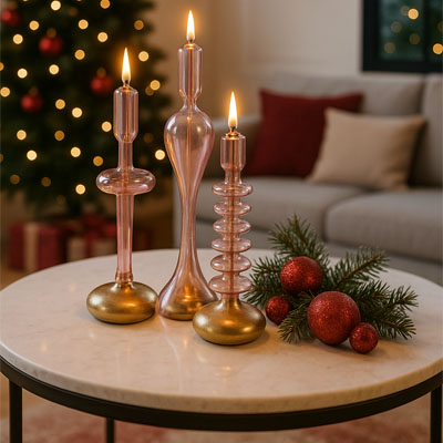 Descrizione: Candela Caentro Tavola a Pila Rosa e Oro Natale