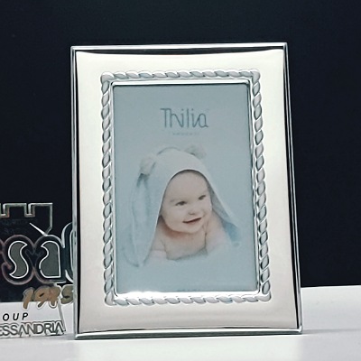 Descrizione: Cornice Linea Treccia Bimbo Celeste in Argento