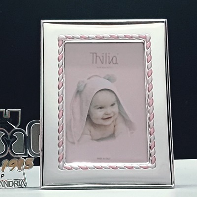 Descrizione: Cornice Linea Treccia Bimba Rosa in Argento